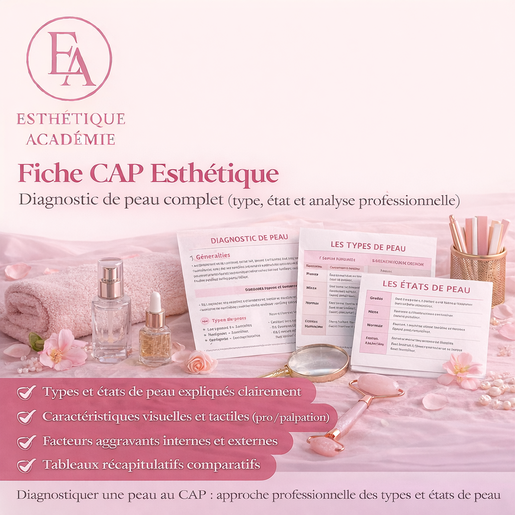 Cette fiche t’apprend à analyser une peau de façon professionnelle, en distinguant clairement le type de peau et l’état de peau, comme attendu à l’examen.
