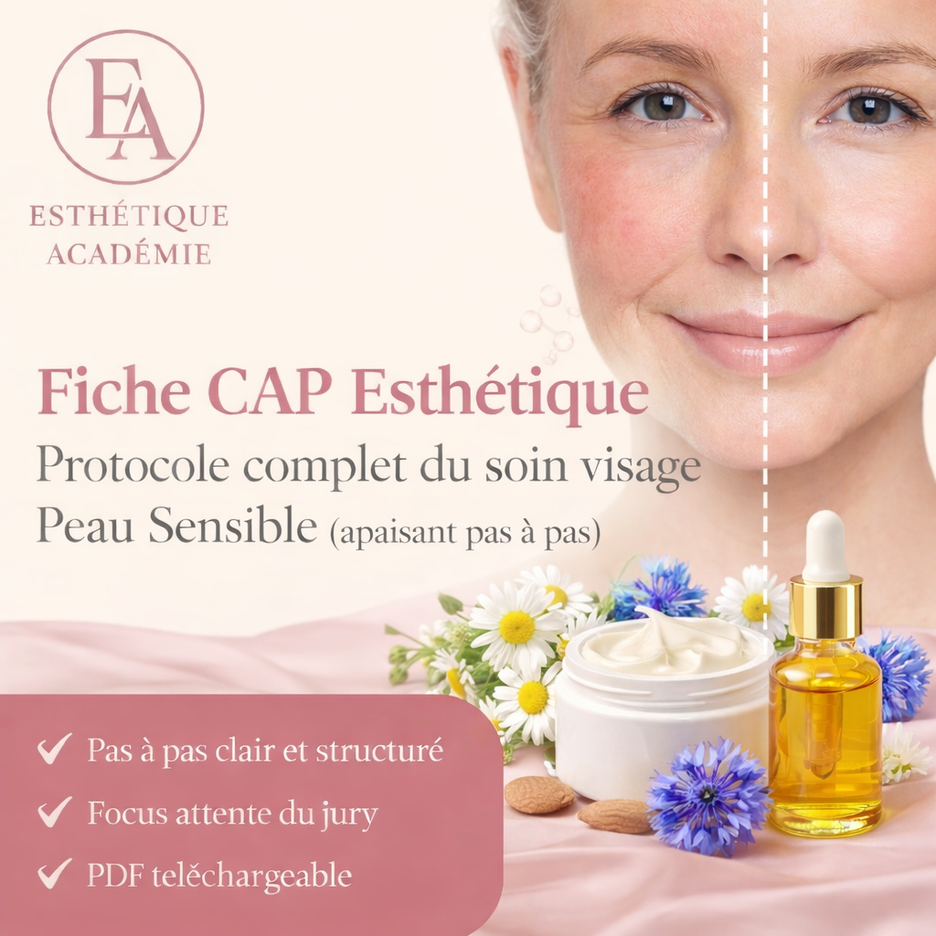 Cette fiche t’aide à structurer un soin visage apaisant, doux et parfaitement maîtrisé, conforme aux attentes professionnelles de l’examen.